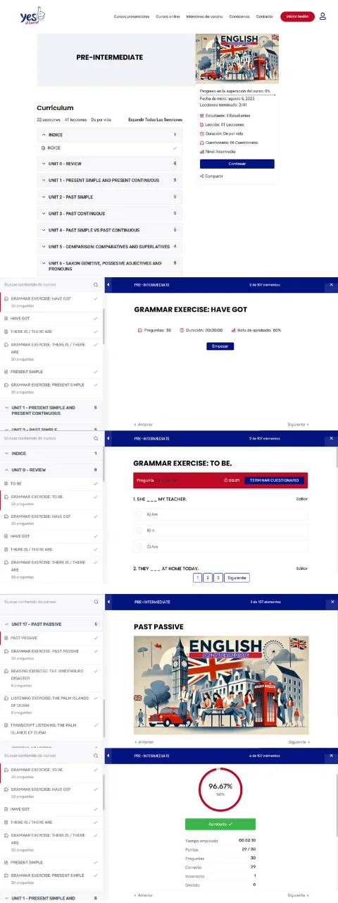 Nuestra plataforma educativa en línea está diseñada para ofrecerte una experiencia de aprendizaje integral y personalizada. Accede a una amplia gama de recursos interactivos, lecciones en video, ejercicios prácticos y actividades de evaluación. Con seguimiento de tu progreso en tiempo real, recibirás recomendaciones y apoyo continuo para alcanzar tus metas lingüísticas.
